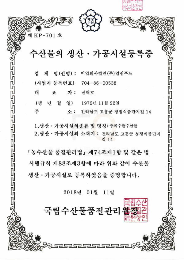 Address : 14, Clean Food Complex-gil, Donggang-myeon, Goheung-gun, Jeollanam-do Open Food