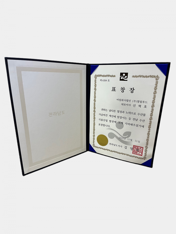 Jeollanam-do Provincial Governor's Commendation Certificate